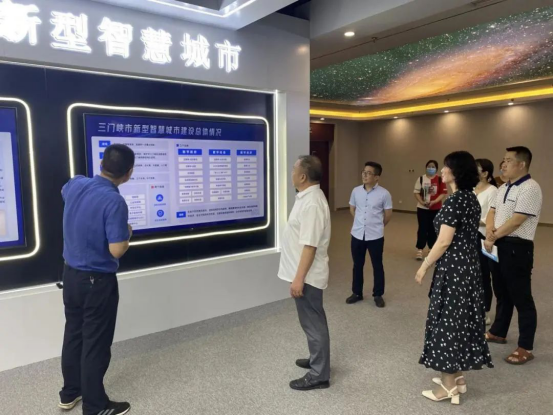 随后参观了崤云安全服务有限公司各工作区域,详细介绍了三门峡市信息安全监控服务平台、三门峡市“放管服”数字大脑、城市门户运行中心、营商环境中心等各工作区域的运营模式及技术研发情况。