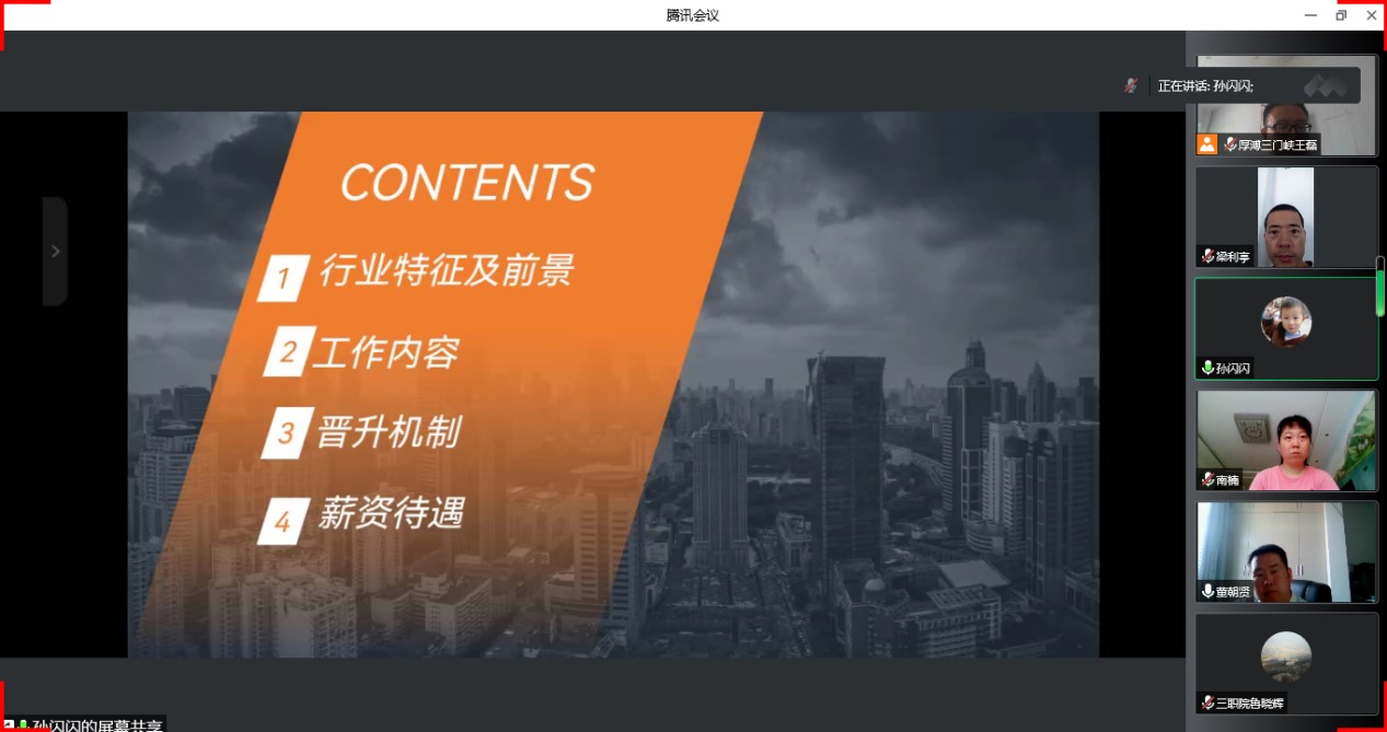 为了进一步拓展员工的就业渠道,提高员工就业质量,2022年8月12日上午,太阳成集团tyc151cc办公室主任董朝贤,计算机应用技术教研室主任鲁晓辉、副主任南楠,软件技术教研室主任梁利亭,河南厚溥教育科技有限公司校区负责人王磊,通过腾讯会议平台线上对河南特邦软件科技有限公司开展访企拓岗活动,河南特邦软件科技有限公司总经理孙闪闪,河南厚溥教育科技有限公司就业部经理杨雷陪同调研。